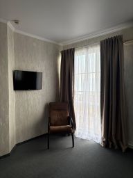 Все номера прекрасно оформлены и оснащены всем необходимым- ванной комнатой с санузлом и душевыми кабинами. В комнатах- удобные кровати (большая двухспальная или две односпальных), сплит-система, телевизор, мини- холодильник, электрочайник и чайная посуда. К услугам гостей- бесплатный интернет.