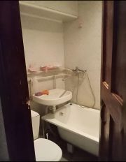 В квартире сделан косметический ремонт, что придаёт ей светлый и ухоженный вид. В комнате и на кухне есть вся необходимая мебель для комфортного проживания. Из техники — холодильник и телевизор. Санузел совмещённый, в нём установлена вся необходимая сантехника.