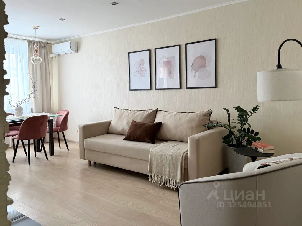 Элегантная гостиная с мягким раскладывающим диваном, большая обеденная зона, ТВ, кресло,журнальный столик- идеальное место для отдыха после насыщенного дня .