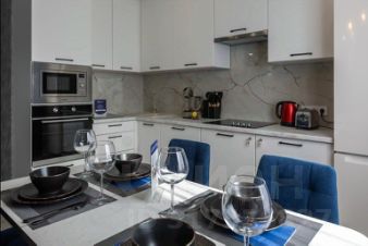 - Просторная кухня с варочной поверхностью, вместительным холодильником, микроволновой печью, красивой посудой и всем необходимым для приготовления любимых блюд.