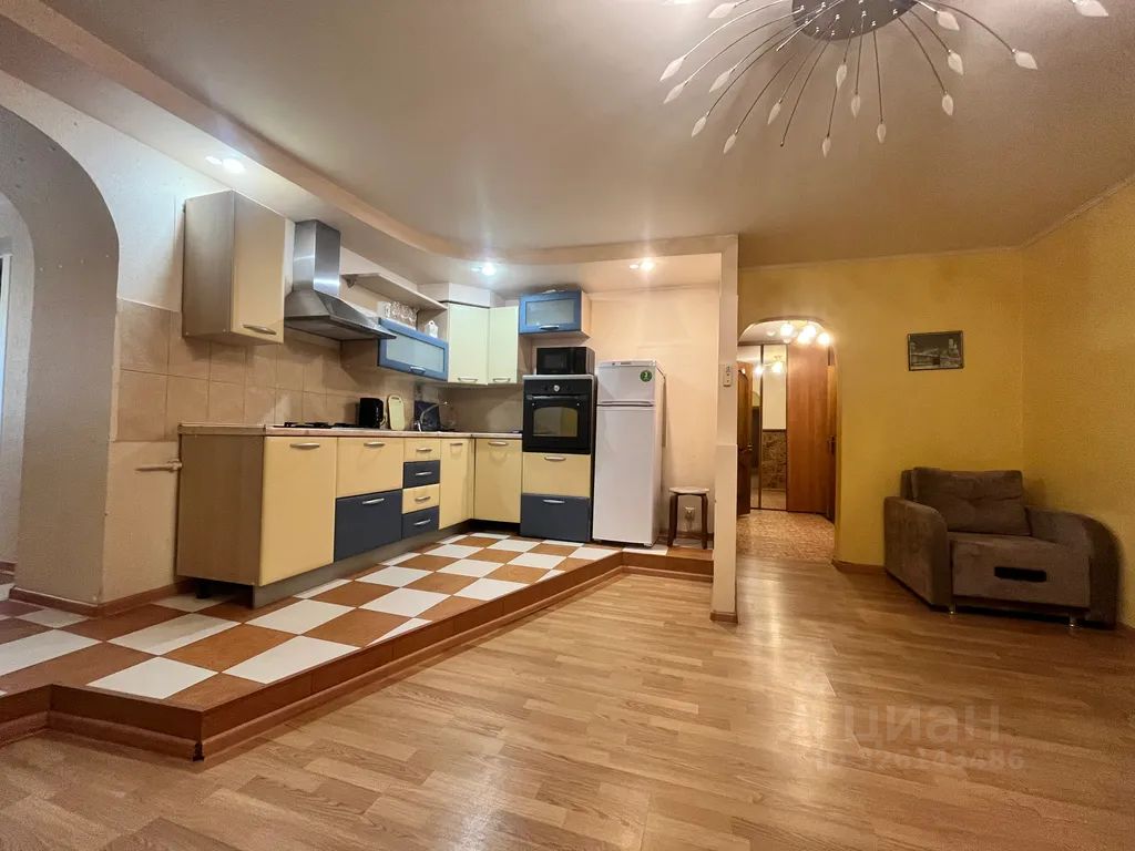 Две изолированные спальни и кухня-студия с диваном и кресло-кроватью вмещает 6 человек. На кухонном диване может уместиться 2 ребёнка. Ремонт приличный.