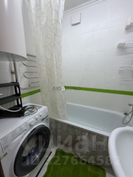 В ванной комнате установлена стиральная машина и ванна.