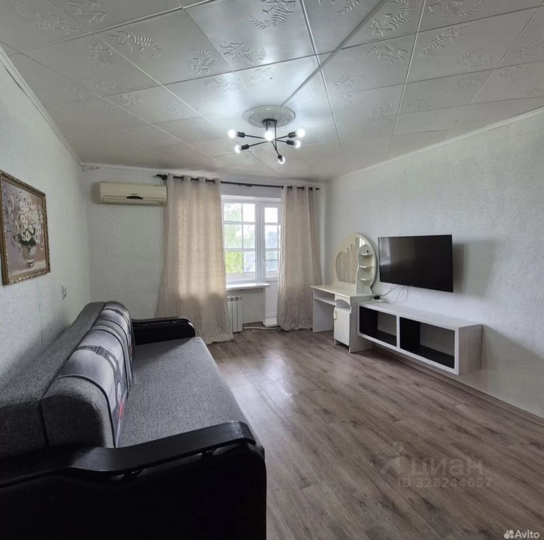 В квартире сделан косметический ремонт, так что она выглядит аккуратно и свежо. Обстановка включает в себя всю необходимую мебель как на кухне, так и в комнате. Для вашего комфорта установлены кондиционер, холодильник, телевизор и стиральная машина. В санузле есть ванна, что позволяет расслабиться после долгого дня. Также имеется лоджия.