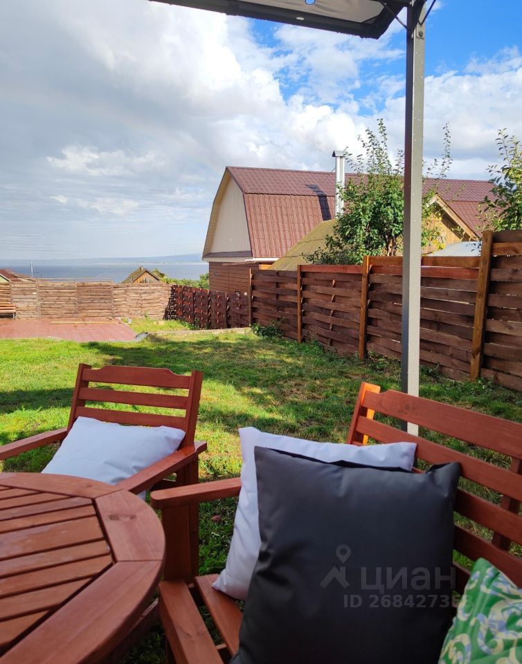 В доме абсолютно всё новое, кроме большого винтажного обеденного стола 1952 года. Шикарный вид на Волгу из гостиной и с террасы, а так же из летнего шатра в саду с садовой мебелью.