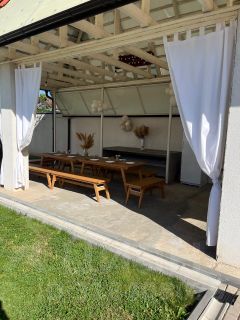 Музыкальное оборудование, Wi-Fi, 3 телевизора, бассейн, шезлонги, зонтики, летняя кухня, мангальная зона.