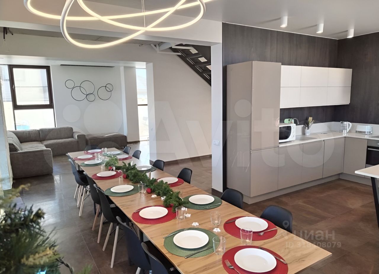 2 м. В доме 4 изолированные спальни, 10 спальных мест. Кухня-гостиная 50 кв. м.
