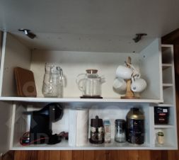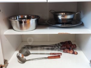 • на кухне: холодильник с морозильной камерой, чайник, кофемашина, микроволновка, различная посуда