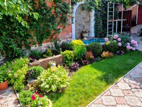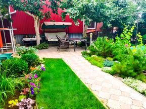 -Беседка, красивая ухоженная территория с цветами, деревьями под которыми спрячетесь от солнца.