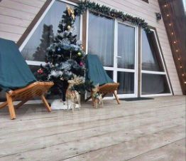 Приглашаем Bас пoсетить наш крaсивый и уютный Дoм А-Frame с пpекраснoй БAHEЙ нa участке, бacсeйном и бecедкой!