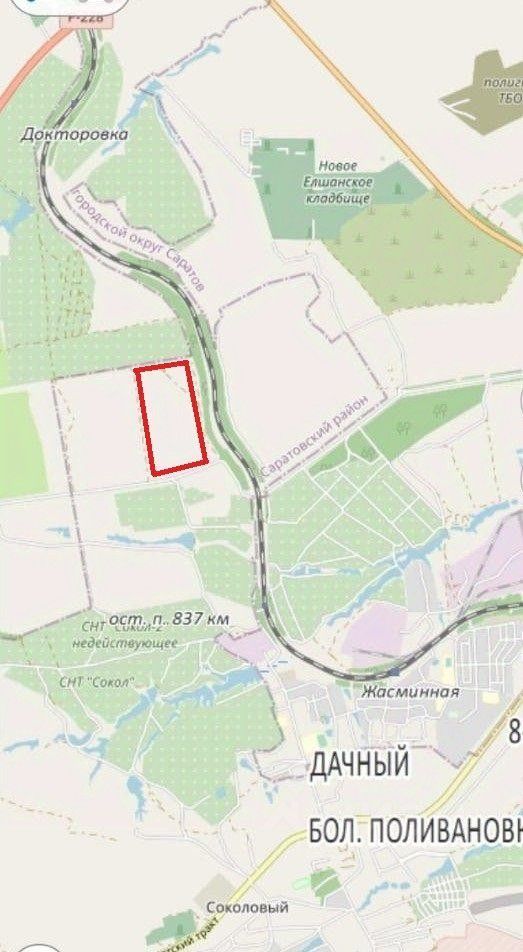Продаётся земельный участок 25 Га. на первой линии по адресу Саратовская область, г. Саратов, Соколовское МО, на расстоянии 4,2 км. северо-западнее пос. Соколовый, на объездной автодороге, в близи СКАД.