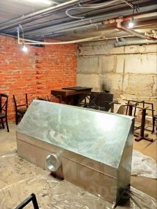 УСТАНОВЛЕНА МОЩНАЯ ВЫТЯЖКА, ВЫВЕДЕНА НА КРЫШУ ДОМА. На данный момент помещение полностью освобождено от всего что на фото.