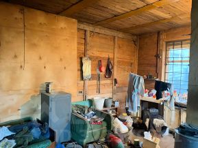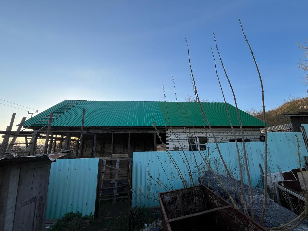 3. Также на участке находится дом, в котором можно прописаться. Дом тоже в долевой собственности. В настоящее время реконструируется. Остаётся много стройматериалов. В доме есть электричество, также можно подвести газ и воду (как у соседей).