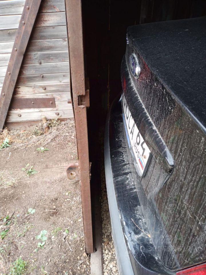 железный гараж, небольшой но автомобиль помещается.