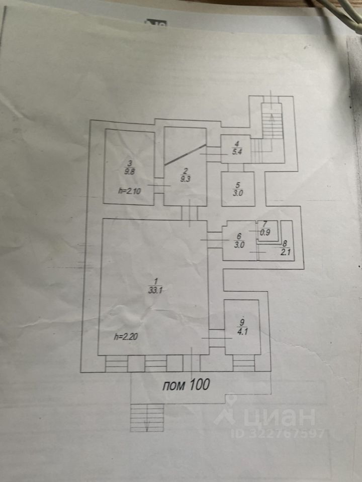Планировка: общая площадь 75,9 кв.м., свободный зал 33,1 кв.м., кабинет 4 кв.м, подсобные помещения, два с/у.