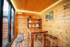 - Летняя беседка с мебелью и летней кухней