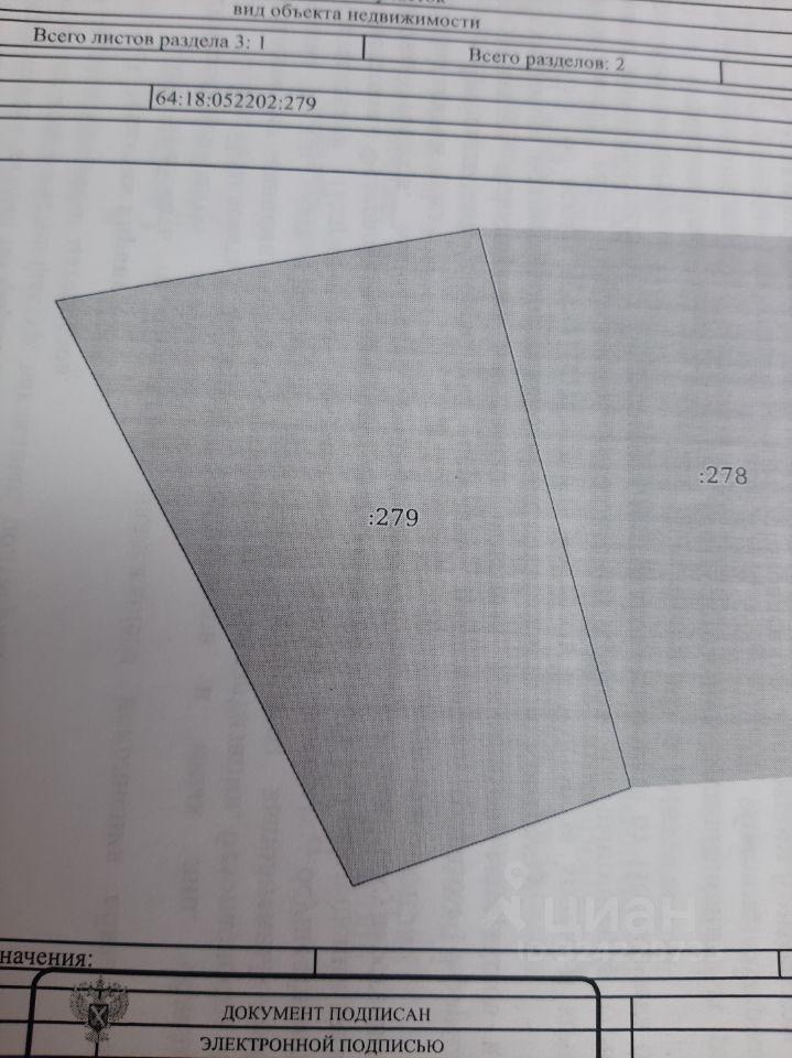 земельный участок, кадастровым номером 64:18:052202:279, расположенный по адресу: Российская Федерация, Саратовская область, Краснопартизанский р-н, рп Горный, ул Первомайская, в 98 метрах юго-западнее земельного участка с кадастровым номером 64:18:052202:277., общей площадью 1837 кв.м., Категория земель: земли населенных пунктов. Вид разрешенного использования: для ведения личного подсобного хозяйства (приусадебный земельный участок)2.2.