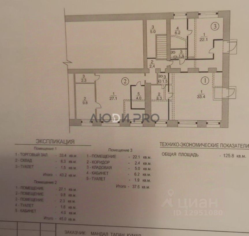 -Планировка: 3 зала, подсобные помещения, 3 с/у.