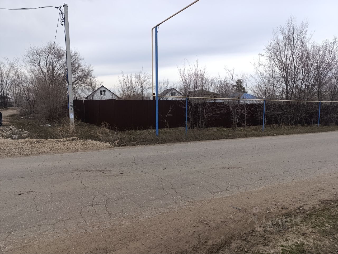 Участок огорожен по всему периметру забором из профлиста.. Подведено электричество, газ и центральная вода по границе участка.