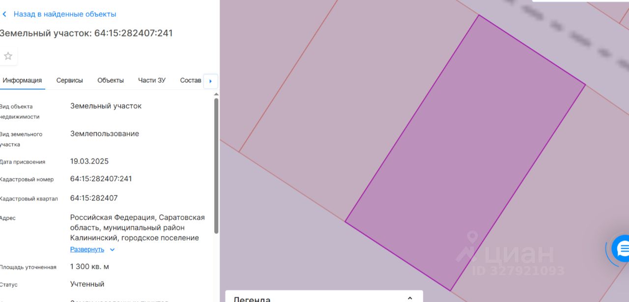 Земельный участок с кадастровым номером 64:15:282407:241, площадью 1300 (одна тысяча триста) кв.м,, категория земель: земли населенных пунктов, ограничения в использовании: нет, разрешенное использование: для индивидуального жилищного строительства