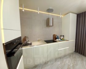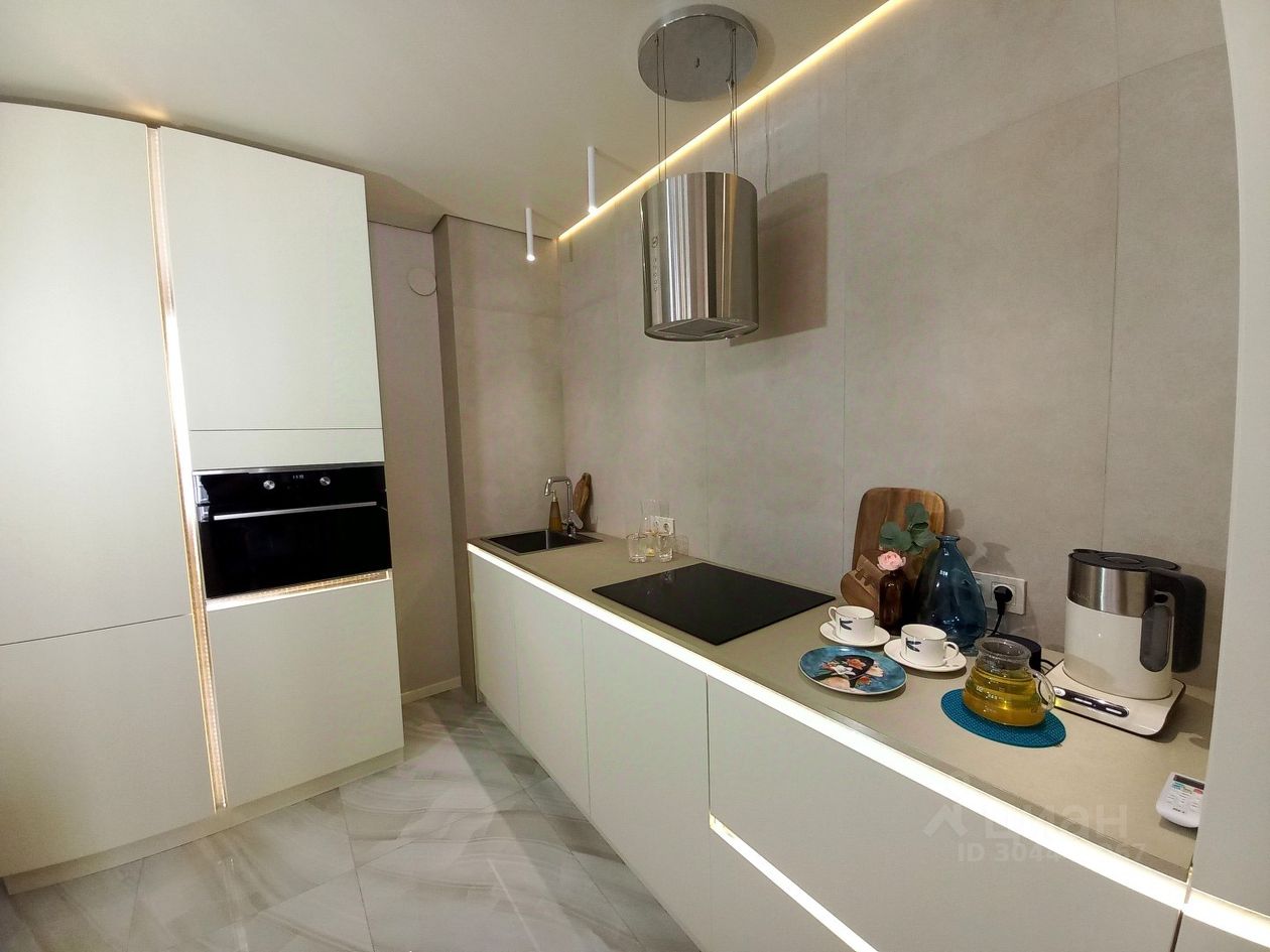 По всей квартире натяжные теневые парящие потолки со светодиодной подсветкой.