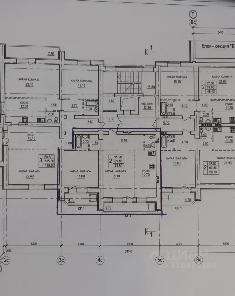 Жилой комплекс состоит из трех 10-ти этажных, кирпичных блок-секций А, Б и В.