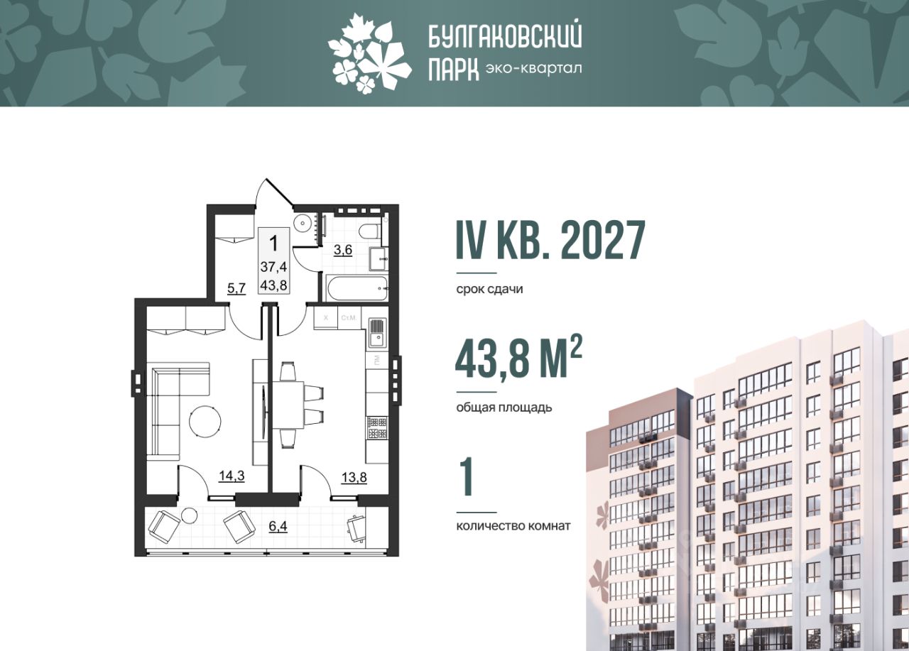 Живите по своим правилам в доме комфорт-класса! Эко-квартал Булгаковский парк входит в топ-5 федерального экспертного рейтинга по потребительским качествам. Дважды занимал призовые места в конкурсе Лучший ТОП ЖК от ЕРЗ. Идеально подойдет для одного человека, пары или в качестве инвестиции под сдачу. Комфорт без лишних затрат на метры. Формат такой однокомнатной квартиры подходит как первое жилье, студия для работы и отдыха или квартира под сдачу. Просторная кухня 13,8 м2 совмещает в себе зону готовку, обеденную и по желанию лаунж-зону - удобно, стильно и современно. Отлично подойдет для встреч с друзьями или уютных вечеров дома. В уединенной жилой комнате 14,3 м2 можно организовать полноценную спальню или жилую зону с рабочим местом. Комната отделена от кухни и не является проходной, что полностью позволяет сохранить приватность. Огромное преимущества квартир - большая остекленная лоджия 6,4 м2, которая может стать вашей мини-террасой. Лоджия вытянута, с выходом из обеих комнат. Здесь можно организовать зону отдыха, рабочее место, мастерскую или зимний сад. Вместительный холл 5,7 м2 с возможностью установить полноценный шкаф - отличный буфер между входом и жилым пространством. Все комнаты правильной формы - здесь легко расставить мебель и сохранить ощущение простора. Нет острых углов или же "тупиков". Свободная планировка - вы можете перепланировать (требуется согласование с БТИ) и адаптировать квартиру под свои нужды (при необходимости - объединение комнат, изменение формата кухни и так далее). Квартира продается базово без отделки. Вы можете заказать отделку от застройщика: white box (выполнены все черновые работы) или чистовая отделка. Стоимость отделки можно включить в ипотеку! Крышная котельная обеспечит горячей водой и комфортной температурой в квартире круглый год. Подъезды выполнены по дизайн-проекту. Современная отделка, бесшумные скоростные лифты. Предусмотрена установка всей необходимой навигации в подъезде. На первом этаже расположены велосипедная и колясочная, доступ к которой имеют только жители дома. Предусмотрено огороженная территория, установка умной домофонии (видеовызовы, история вызовов, вход без ключа, удаленный доступ из приложения). Современные спортивные ворк-аут зоны и детские площадки с безопасным покрытием во дворе. Своя управляющая компания! Охватываем все возможные направления работ по уходу за территорией и домом: уборка в местах общего пользования, ухаживание за растениями и зелеными зонами, обслуживание лифтового оборудования и т.д. Собственное приложение для отправки данных по счетчикам и формирование заявок о необходимых работах по дому. Следите за выполнением! Сроки сдачи дома - IV квартал 2027 года. Эко-квартал Булгаковский Парк расположен в районе Саратовского Ипподрома. Рядом строится современная школа, уже построены детский сад и поликлиника. На первых этажах располагаются коммерческие помещения: магазины, пункты выдачи, салоны красоты и т.д. Хорошая транспортная развязка: рядом находится транспортный центр