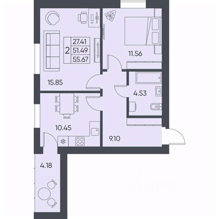 55,67 м²