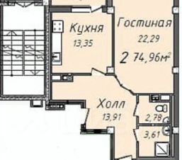 ПЛАНИРОВКА: 75 кв.м.+ 3.77 кв.м. лоджия ("Люксовка" - на две стороны)