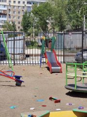 Ухоженный закрытый двор, с автоматическими воротами, на территории двора есть детская площадка, открытая наземная парковка.