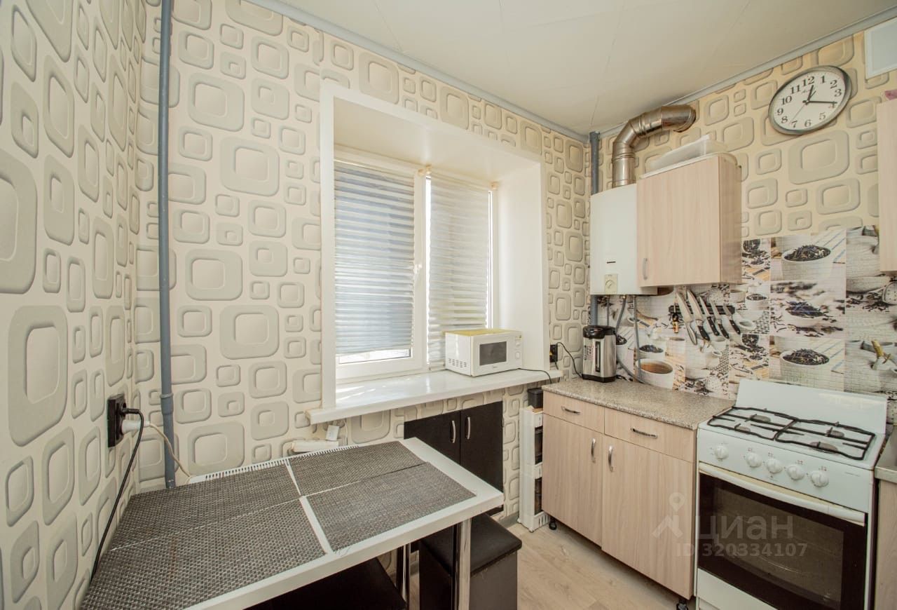 В квартире современная газовая колонка, счётчики воды, газа, электросчетчик. На кухне установлено пластиковое окно, остальные - деревянные.