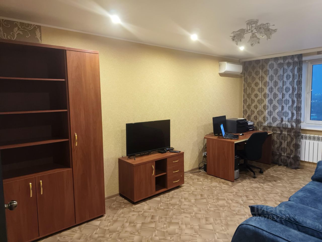 В квартире остается новый холодильник, новая стиральная машинка, вытяжка, варочная поверхность, духовой шкаф, кондиционер,вся мебель: шкаф-гардероб в прихожей, на кухне кухонный гарнитур, диван, обеденный стол, стулья; в комнате новый диван с местом для хранения, стол письменный, комод, шкаф.
