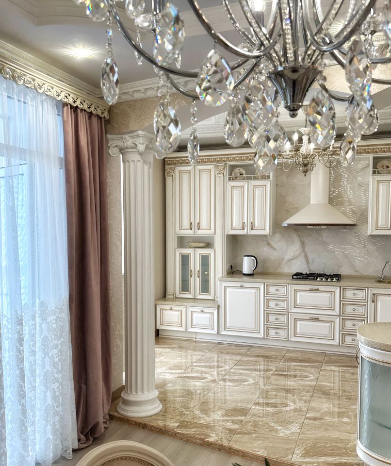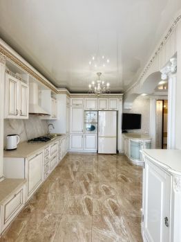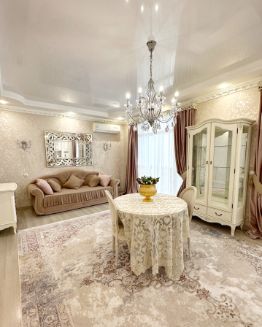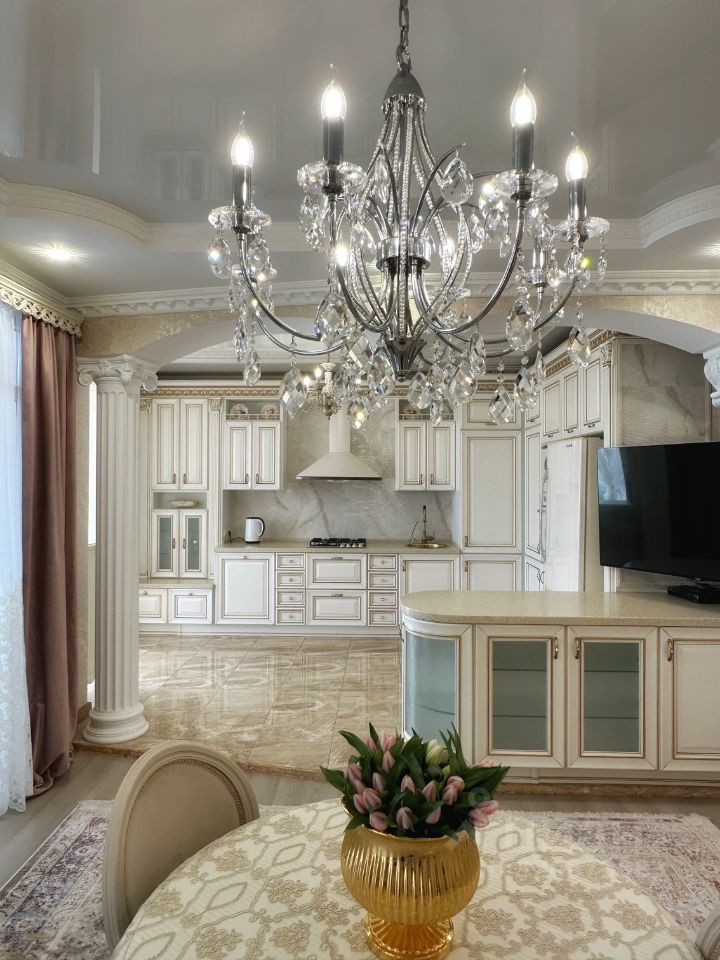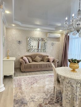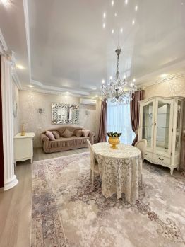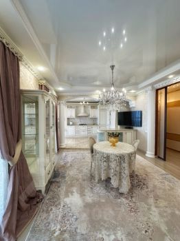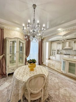 В квартире выполнен отличный ремонт в классическом сдержанном стиле в светлых трендовых тонах, подобрана мебель из массива, текстиль и свет, предметы декора, создавая органичный и уютный интерьер.