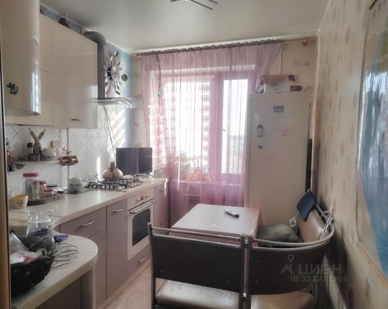 Кухня со встроенной кухонной мебелью, которая так же остается.