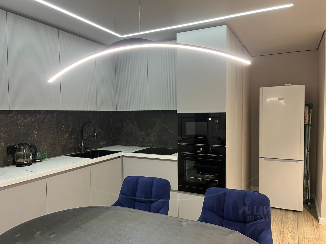В шаговой доступности ТЦ "Облака", детские сады и школы, до набережной 15 минут пешком. В квартире сделан качественный ремонт из дорогих современных строительных материалов. Кухня-гостиная площадью 30 кв.м. оборудована отличным кухонным гарнитуром со встроенной бытовой техникой Электролюкс (варочная поверхность, духовой шкаф, посудомоечная машина, вытяжка, СВЧ), а также сплит-системой (LG 12) и холодильником. Спальня и детская изолированы и полностью оснащены мебелью и техникой. Вся мебель и техника, что на фото (кроме телевизора в гостиной)остается новым собственникам. Вам останется только занести свои личные вещи и наслаждаться уютом нового жилья и прекрасным панорамным видом из окон.