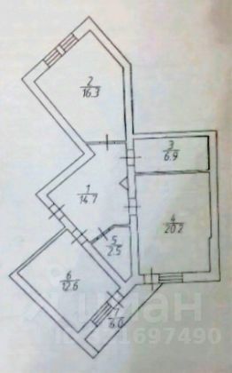 Гостиная 20 м2 + спальня 16.5 м2.