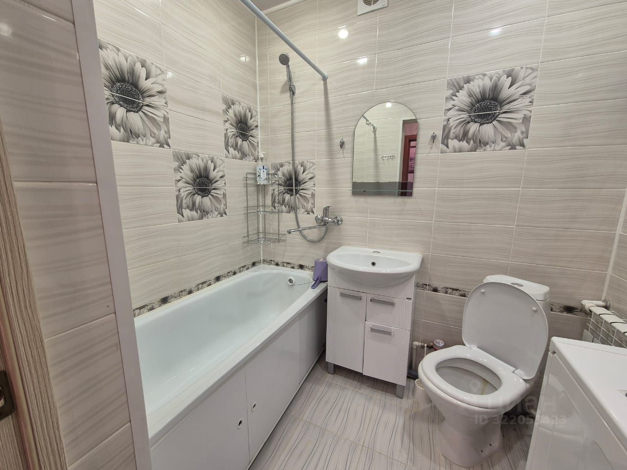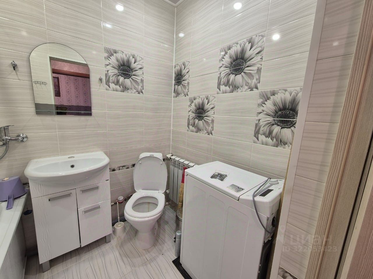 Санузел совмещенный, чистый, красивый ремонт. Стиральная машина в использовании до года, подключена и остаётся новым хозяевам.