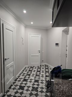 В квартире сделан качественный ремонт от дизайнерскому проекту с применением качественных материалов. Техника Bosch и Liebherr. Кухня, гостиная и большой шкаф в коридоре выполнены в едином стиле в Кухни Рими. На полах и в санузлах использованы керамогранит (с электрическим подогревом) и высококачественный ламинат.