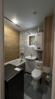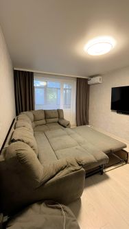 Квартира с евроремонтом: натяжной потолок, напольное покрытие линолеум, полы ровные, электрика заменена, настенное покрытие обои. Просторная комната позволяет зонировать пространство по вашему усмотрению. Совмещенный санузел выполнен в современном стиле, плитка керамогранит. На кухне установлена новая техника, поэтому можно сразу готовить любимые блюда.