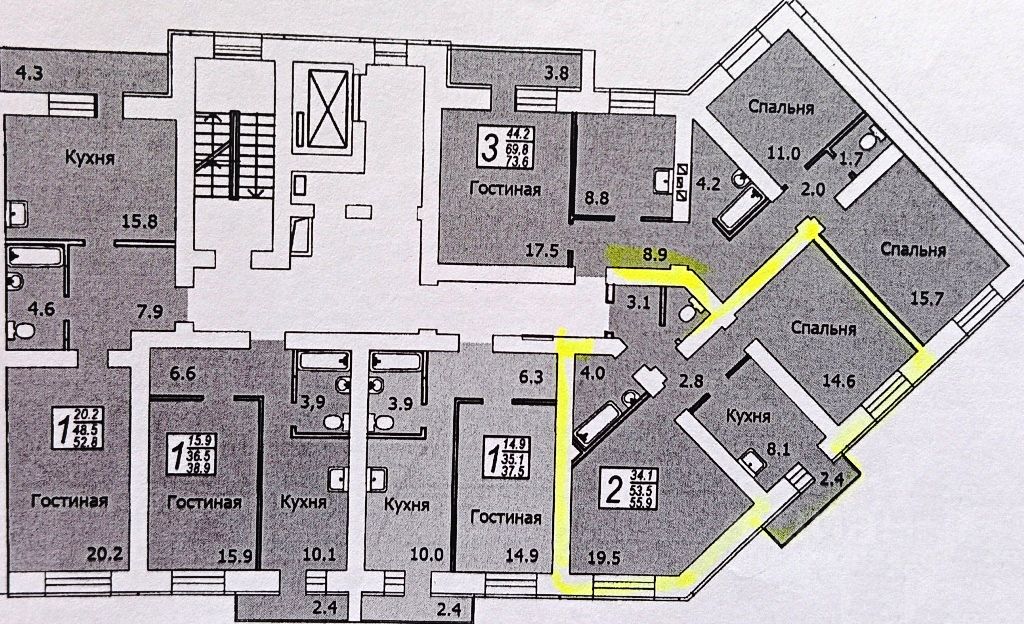 Комнаты изолированны, балкон, с/у. раздельный. Секция В.
