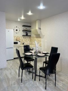 Кухня-гостиная оснащена кухонным гарнитуром, новой духовкой и варочной панелью, холодильником, стеклянным столом со стульями и комфортным диваном.