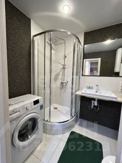 В ванной комнате - душевая кабина, стиральная машина и бойлер для горячей воды.