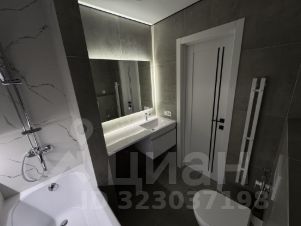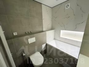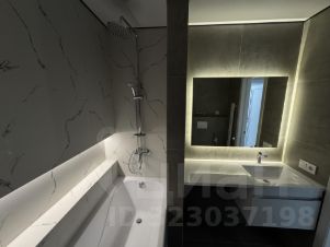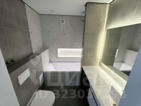 Санузел совмещенный: ванная с тропическим душем, ниша с подсветкой , полотенцесущитель, гигиенический душ, зеркало, столешка под стиральную машинку с тумбой.