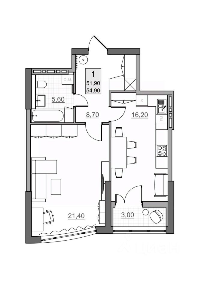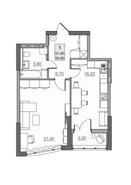 Общая площадь51,9 м²