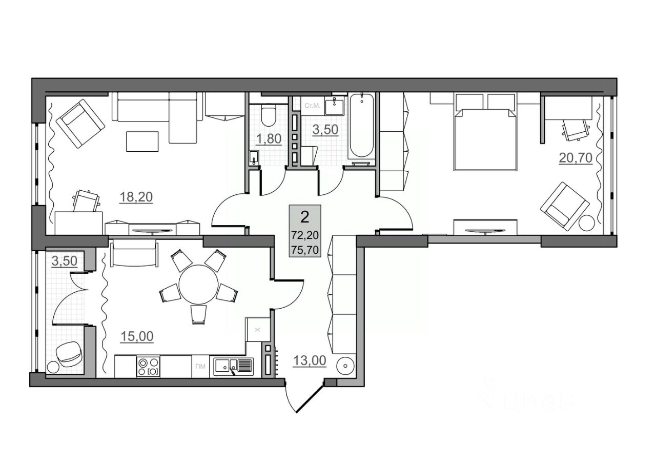 Эта квартира - выбор тех, кто хочет, чтобы дом был союзником. Простор, зонирование и тишина - все на вашей стороне.