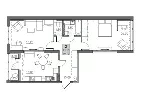 Гостиная 16,6 м2 легко зонируется - вы можете как спланировать полноценную гостиную, так и превратить ее в рабочий кабинет или студию, где никто не отвлекает и ничто не мешает сосредоточиться.