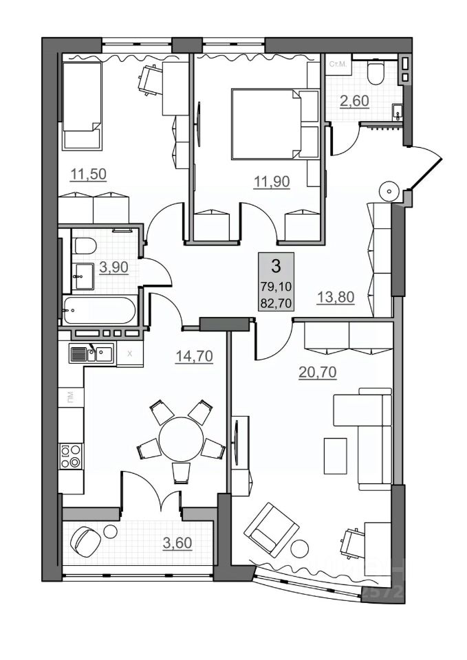 Общая площадь79,1 м²