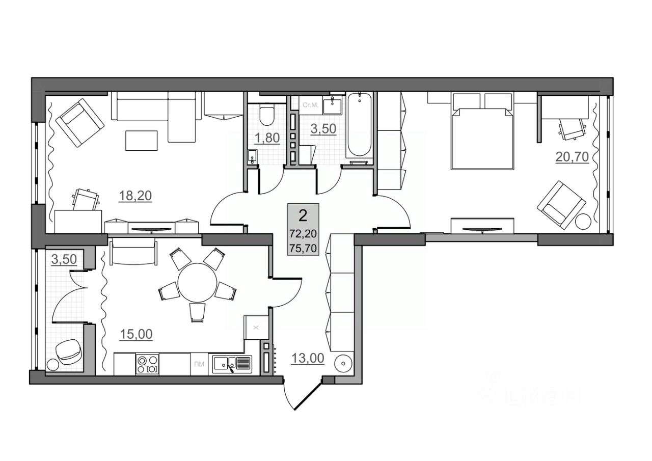 Общая площадь72,2 м²