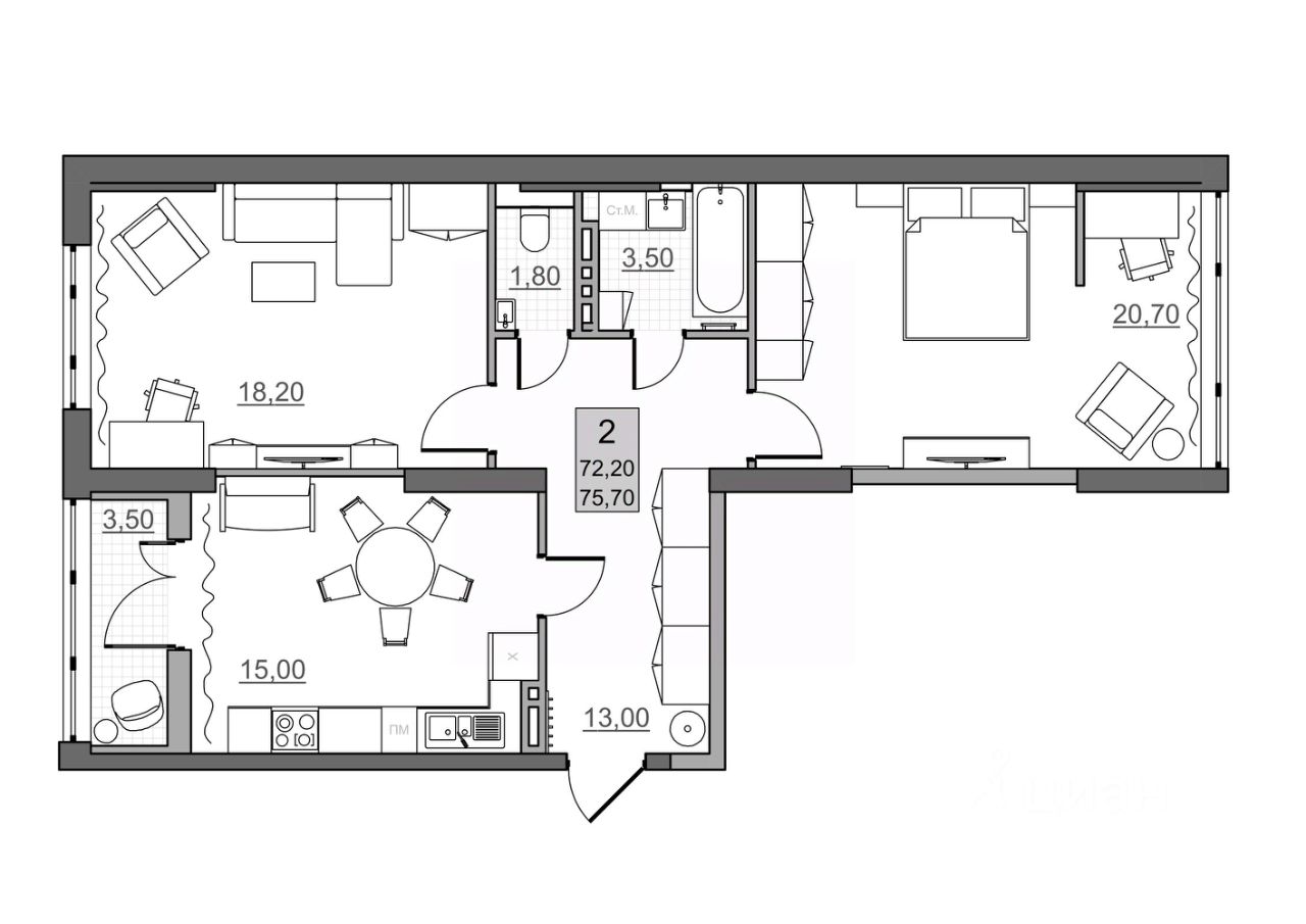 Эта квартира - выбор тех, кто хочет, чтобы дом был союзником. Простор, зонирование и тишина - все на вашей стороне.