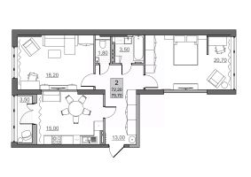 Свободная планировка. По желанию можно сделать перепланировку, подстроив квартиру под себя (требуется согласование с БТИ).
