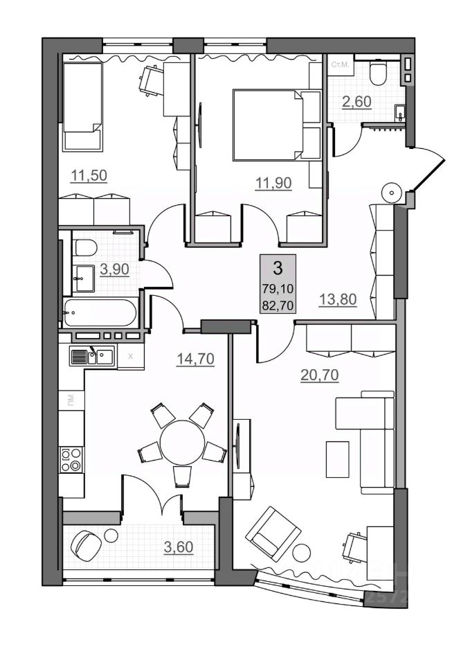 Общая площадь79,1 м²